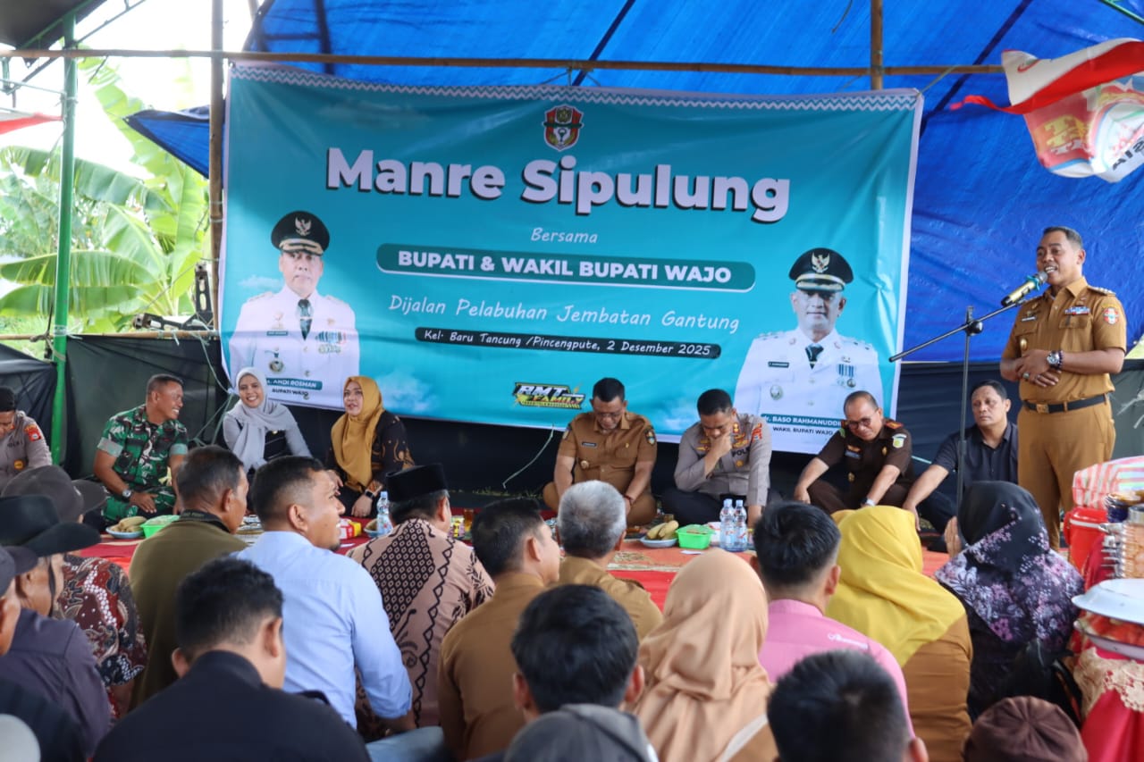 WAJO - Pemerintah Kabupaten (Pemkab) Wajo kembali menggelar Manre Sipulung di Jl Pelabuhan, Jembatan Gantung, Kelurahan Baru Tancung, Kecamatan Tanasitolo, Kabupaten Wajo, Selasa (2/12/2025) Acara tersebut sebagai wujud Pemkab Wajo menjalin silaturahmi dan bertemu langsung masyarakat. Tampak Wakil Bupati Wajo,...